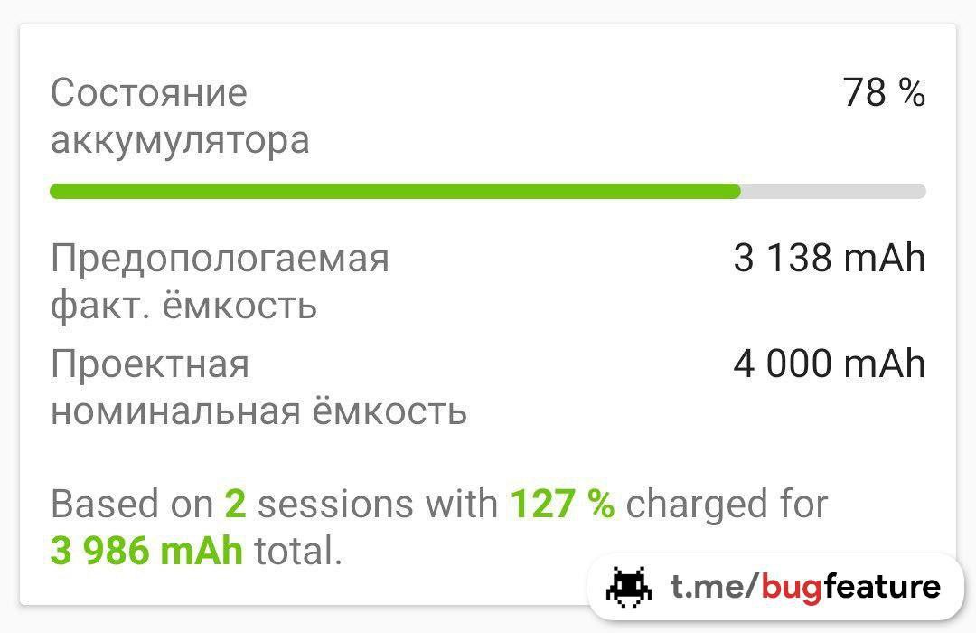 Чтобы определить фактический объём АКБ нужно несколько раз зарядить и разрядить смартфон от 0 до 100%. В разделе "Ёмкость" будет указано приблизительное состояние аккумулятора.