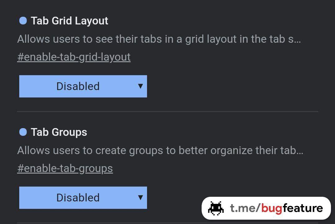 chrome://flags/#enable-tab-groupsЧтобы отключить отображение вкладок сеткой, проделайте те же действия с: