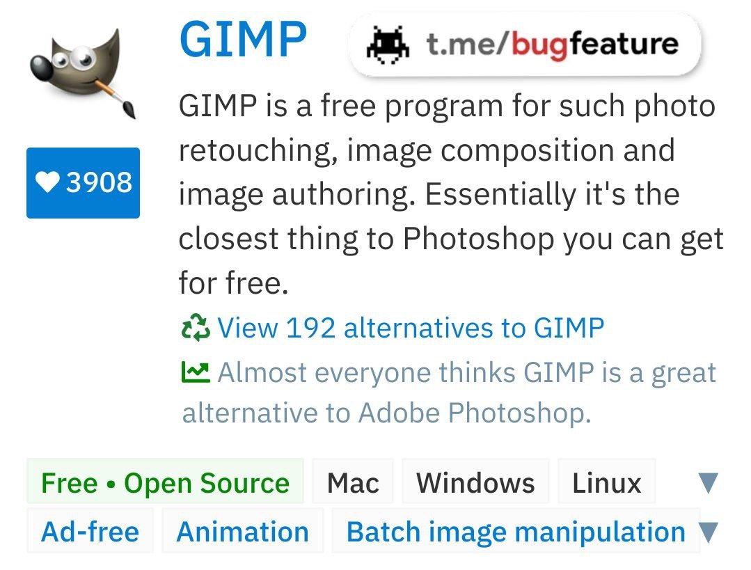 Например, "Gimp" является бесплатным и имеет открытый исходный код в отличии от "Photoshop".