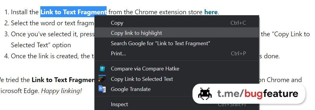 Как скопировать ссылку на конкретную часть статьи в Chrome?