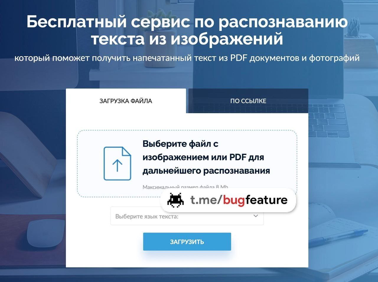 img2txt.com — сервис по распознаванию текста с изображения. Перейдите на сайт, загрузите изображение в нужном формате и выберите язык текста. Вы можете загрузить только изображения с форматом JPG, JPEG, PNG.
