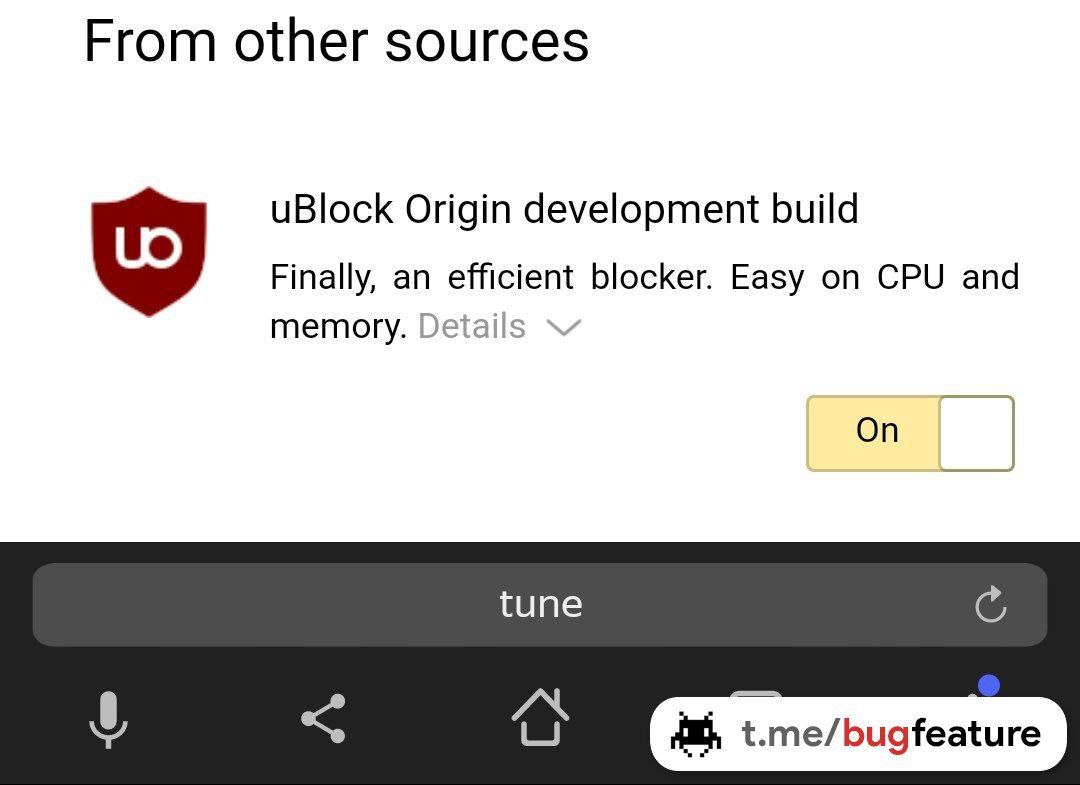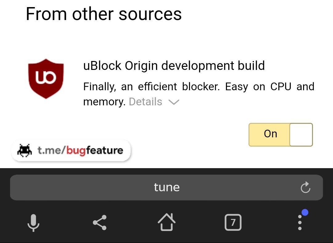 И браузер не позволяет установить обычную версию uBlock. При попытке установить появляется сообщение об ошибке.