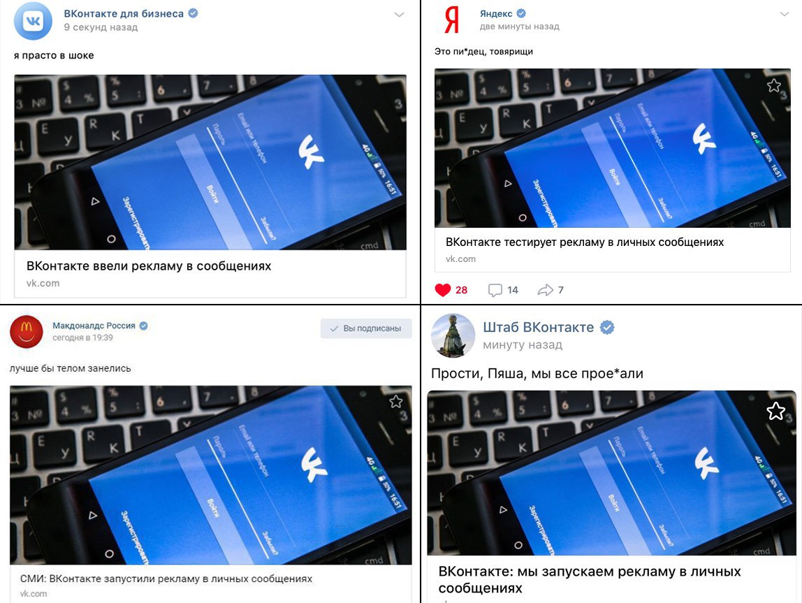 Вчера вечером в различных пабликах Вконтакте начали появляться посты с анонсом рекламы в личных сообщениях.