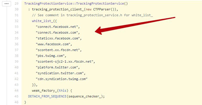 — tracking_protection_service.hНо разработчики заявляют, что белый список существует, чтобы функциональность многих сайтов не страдала.