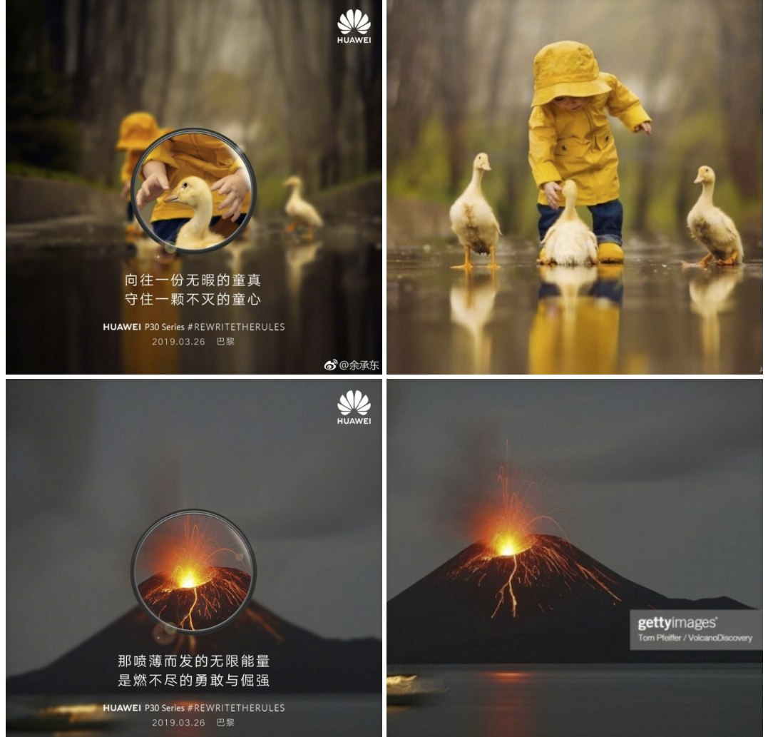 В честь выпуска новых флагманов P30 и P30 Pro, компания 9 марта опубликовала рекламные фотографии в китайской социальной сети Weibo.
