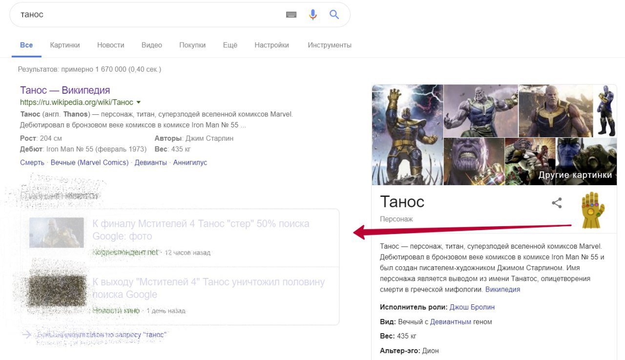 Перчатка Таноса - новая пасхалка в Google