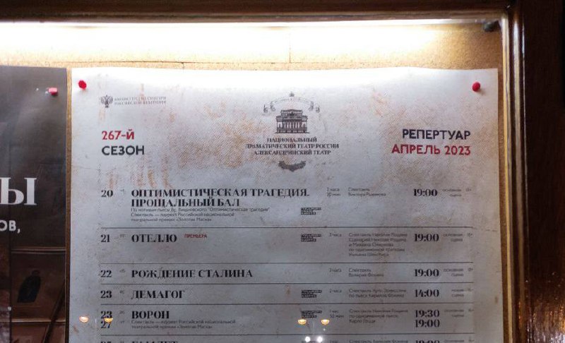 ❌23 апреля и 24 мая должны были пройти показы постановки, но обе отменили — вместо них покажут другой спектакль Рощина «Ворон». Ещё вчера зрителям стали звонить и предлагать либо пойти на «Ворона», либо получить деньги обратно. Как сообщили «Ротонде» в пресс-службе Александринского театра, это не связано с подозрениями в дискредитации — просто «технические проблемы с реквизитом».
