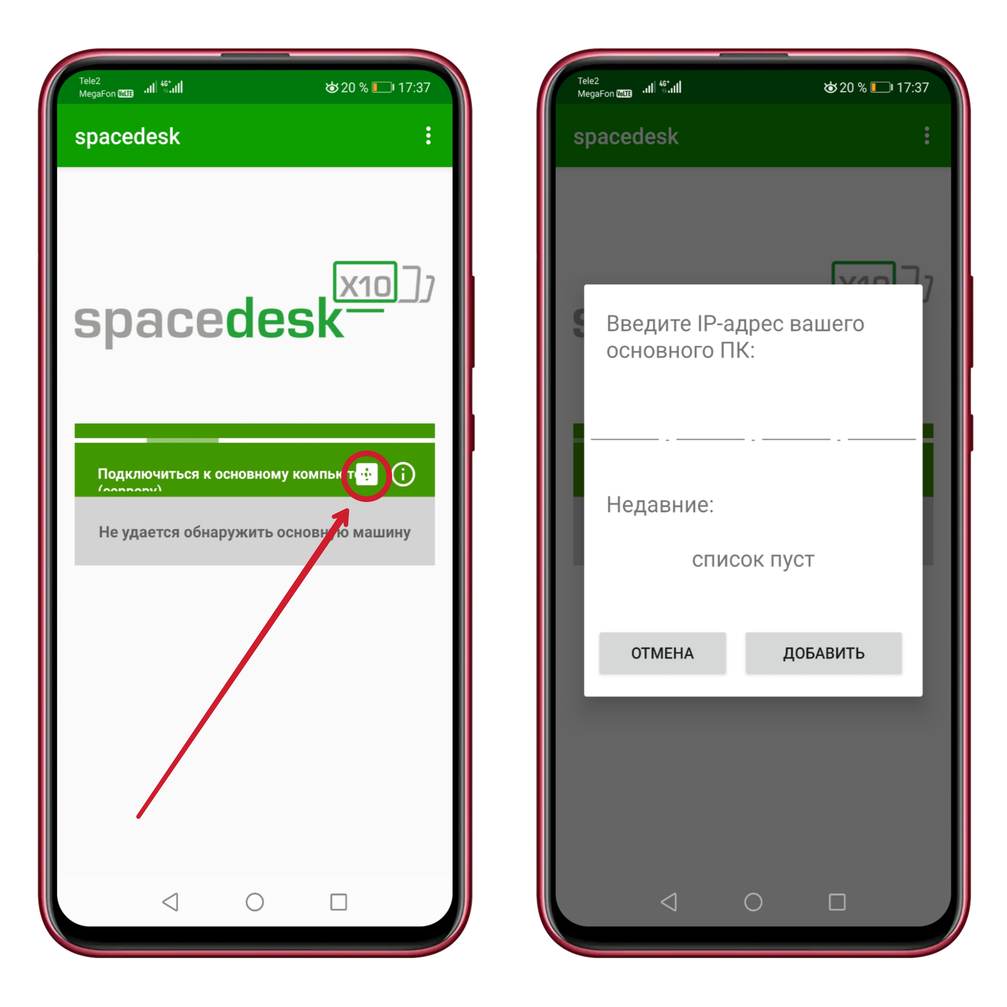 6. Вводим IP-адрес, который дан в приложении на смартфоне (в строке чуть ниже настроек).