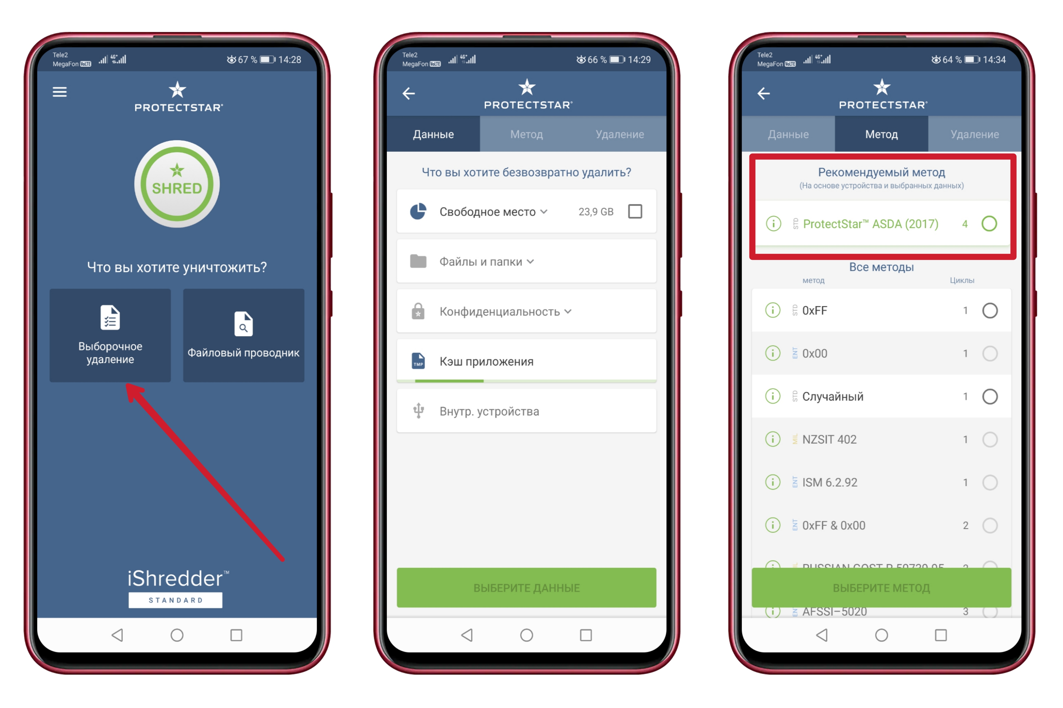 4. Теперь выбираем метод удаления. Приложение даст несколько вариантов. Лучше выбрать "Рекомендуемый метод", потому что система проанализировала ваш смартфон и знает, какой способ точно удалит нужный файл.