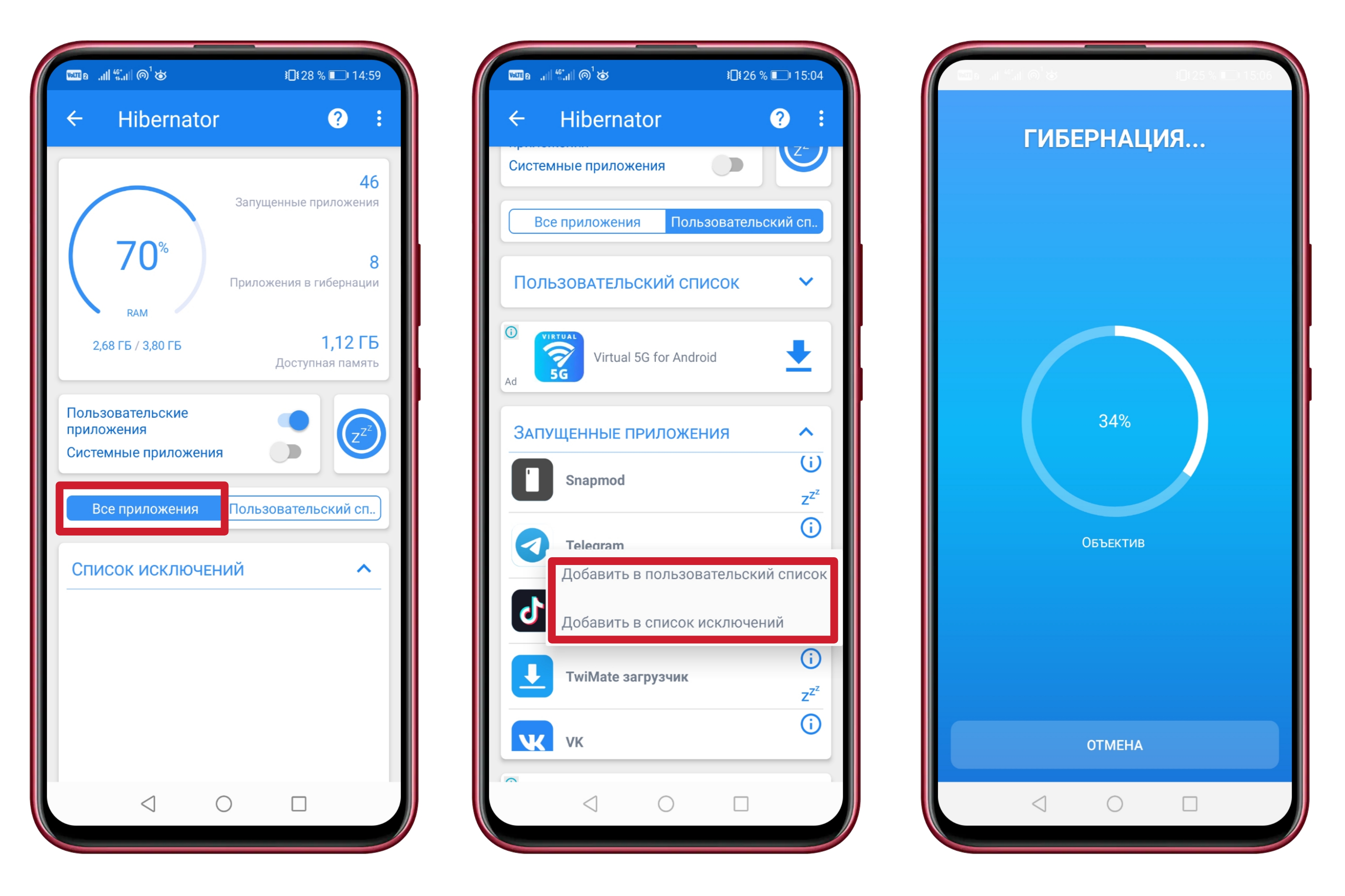 Откроем секрет: когда вы смахиваете приложения из списка открытых — они продолжают работать фоном и тратить вашу батарею. Чтобы не отключить их вручную, пользуйтесь Hibernator. Эта программа продлит жизнь вашему смартфона.