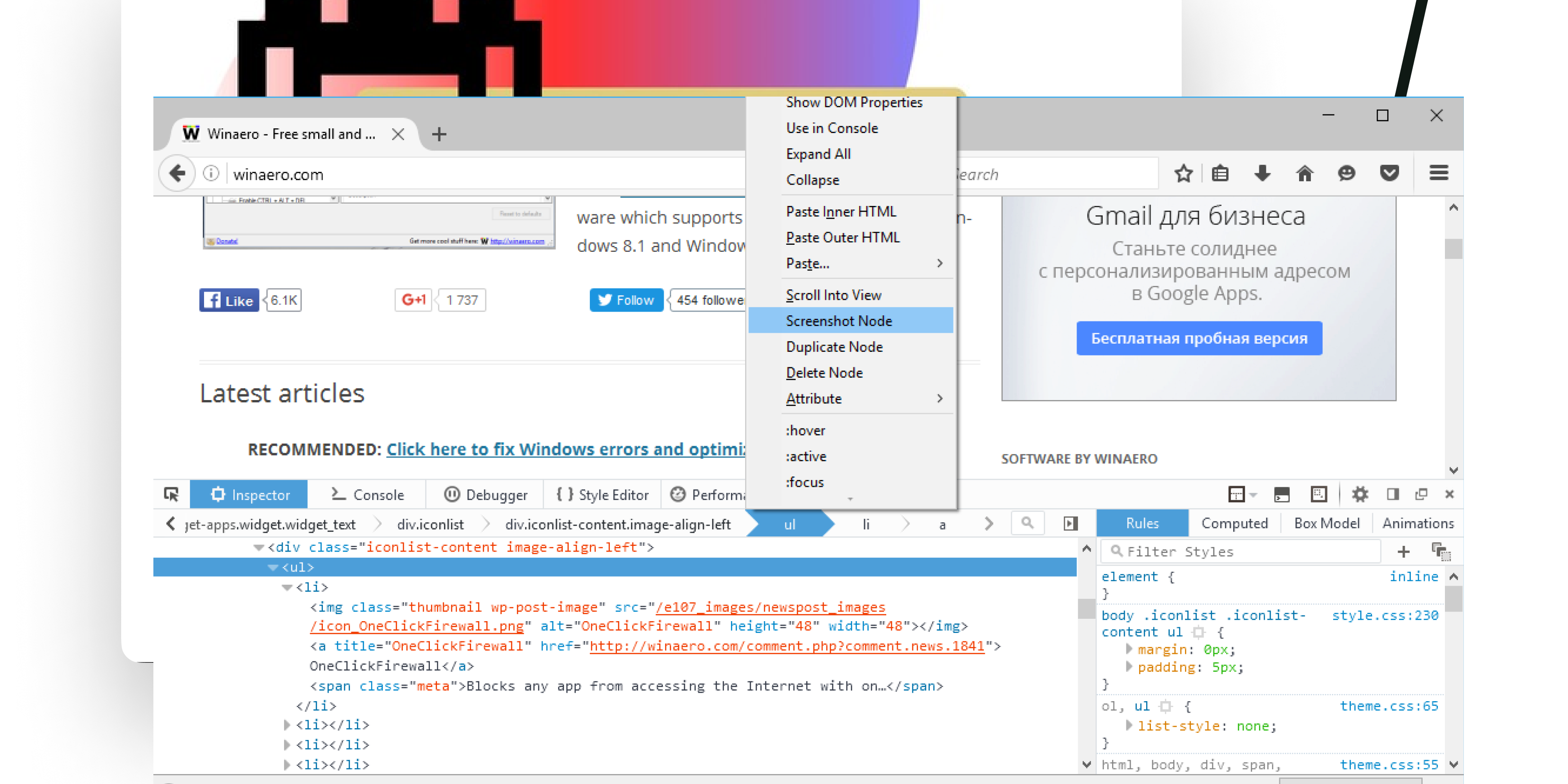 3. Выбираем пункт "Capture node screenshot".