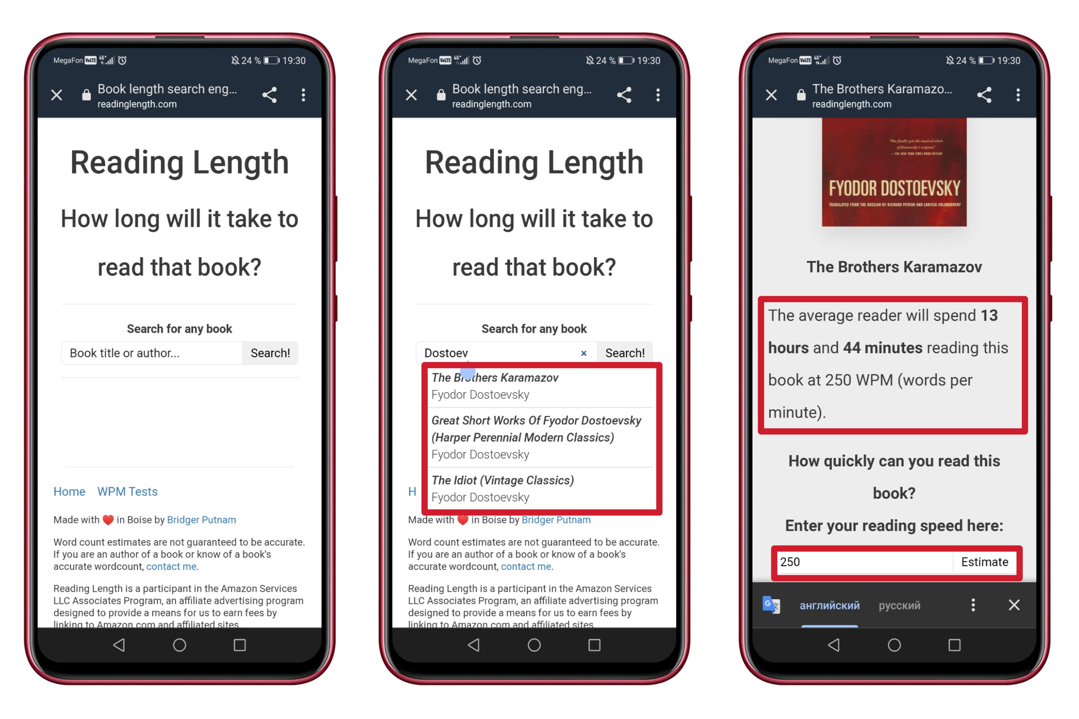 3. Нажимаем на нужную книгу и под обложкой видим время прочтения, скорость по умолчанию 250 слов в минуту. Если вы читаете медленнее или быстрее — ищите строку ниже, вбивайте количество слов в минуту и жмите "Estimate".