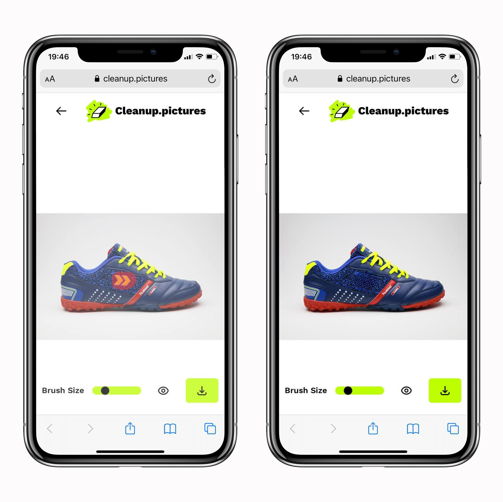 3. С помощью ползунка “Brush size” регулируем размер кисти и выполняем ретушь на нужном месте.