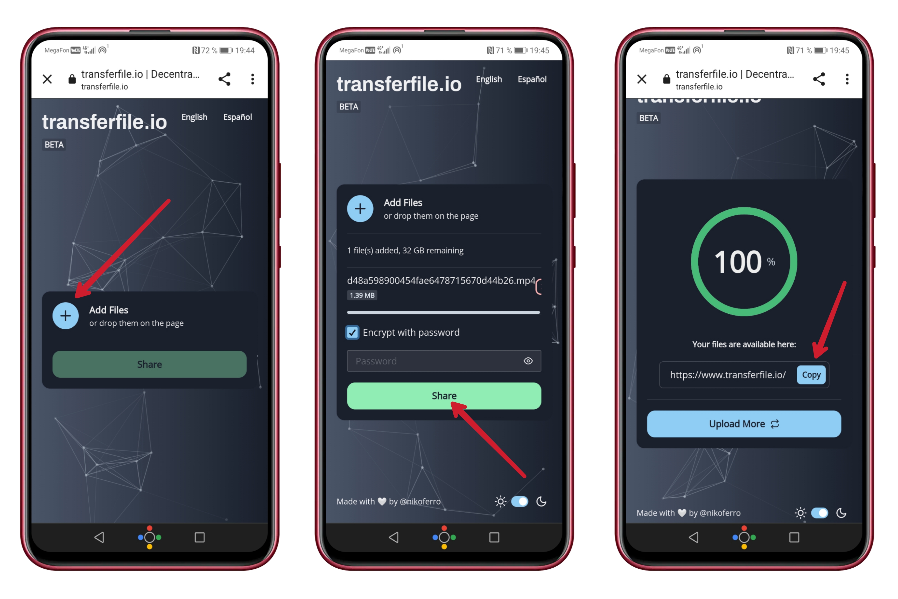 Воспользуйтесь файлообменником на основе блокчейна — «Transferfile». С его помощью вы можете делиться файлами размером до 32Гб. Сервис полностью бесплатный и не требует регистрации.
