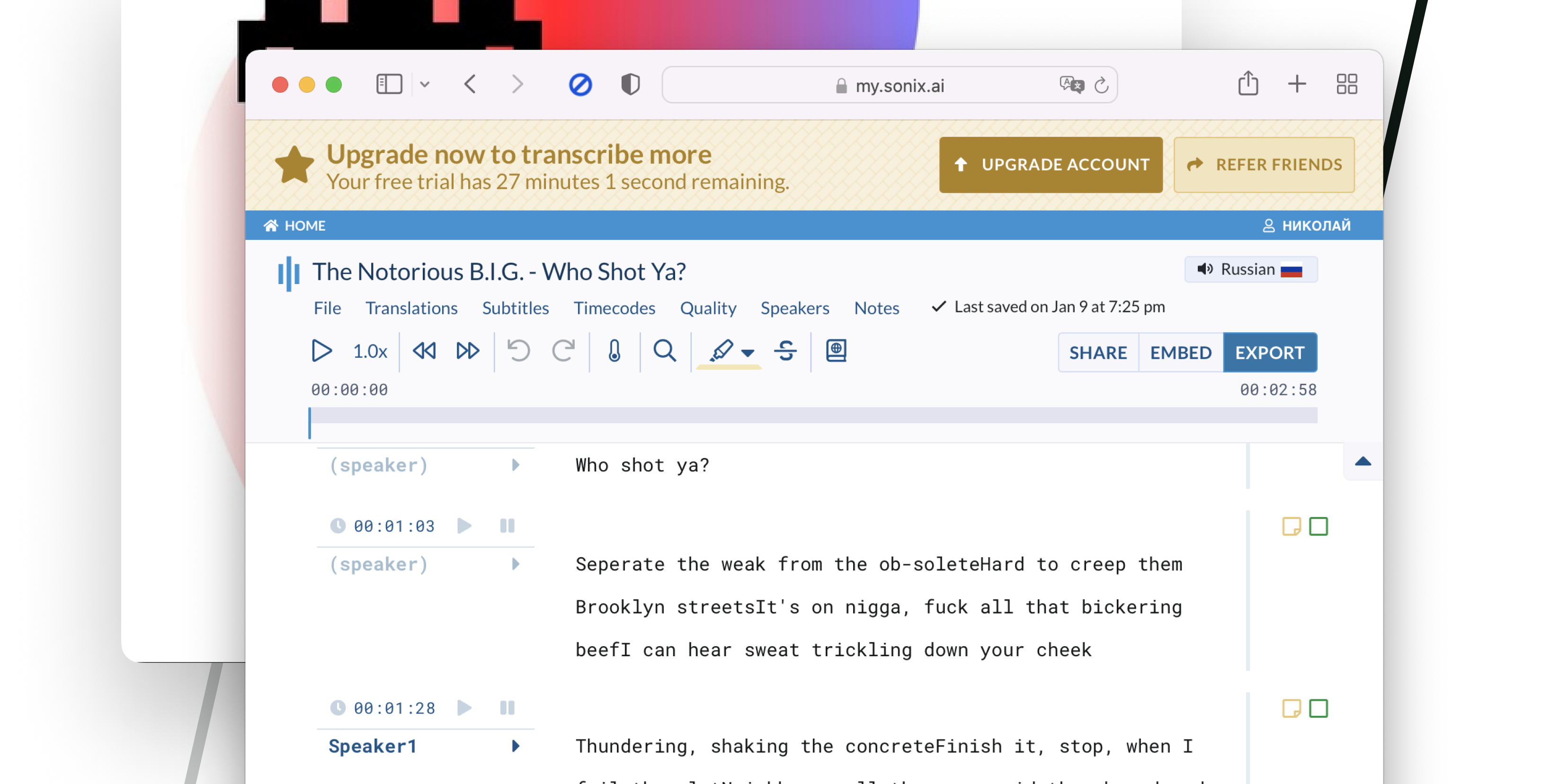 Готовый текст также доступен для перевода на 35 языков. Для транскрипции первые 30 минут видео бесплатные. Пользуйтесь!