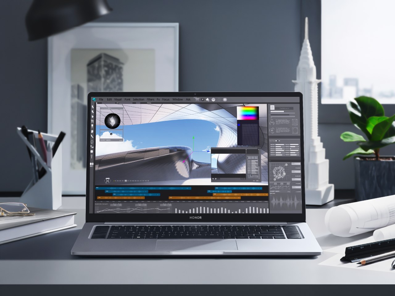 Второй важный момент — это экран. Думаем, не стоит объяснять, что диагональ — не единственный важный параметр, и все-таки наличие 16,1-дюймового антибликового FullView-экрана с тонкими рамками позволит работать в удовольствие. На примере всё того же HONOR MagicBook 16 мы получаем максимально насыщенное, яркое и детализированное изображение, но такие показатели — результат 100% цветового охвата sRGB, яркости 300 нит и широкого угла обзора 170 градусов.