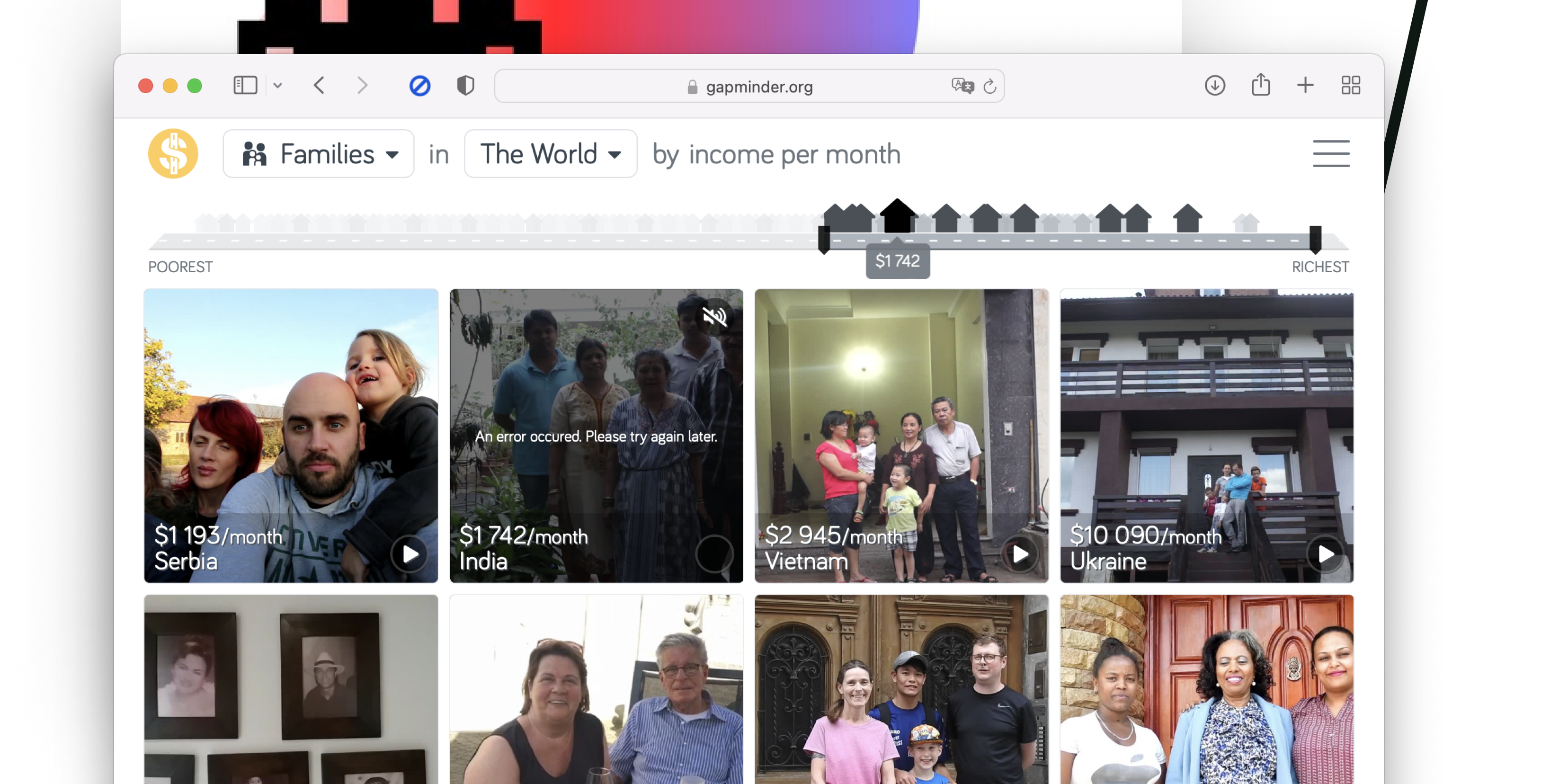 1. Открываем сайт и видим изображения семей — от самых бедных до самых богатых слева направо.
