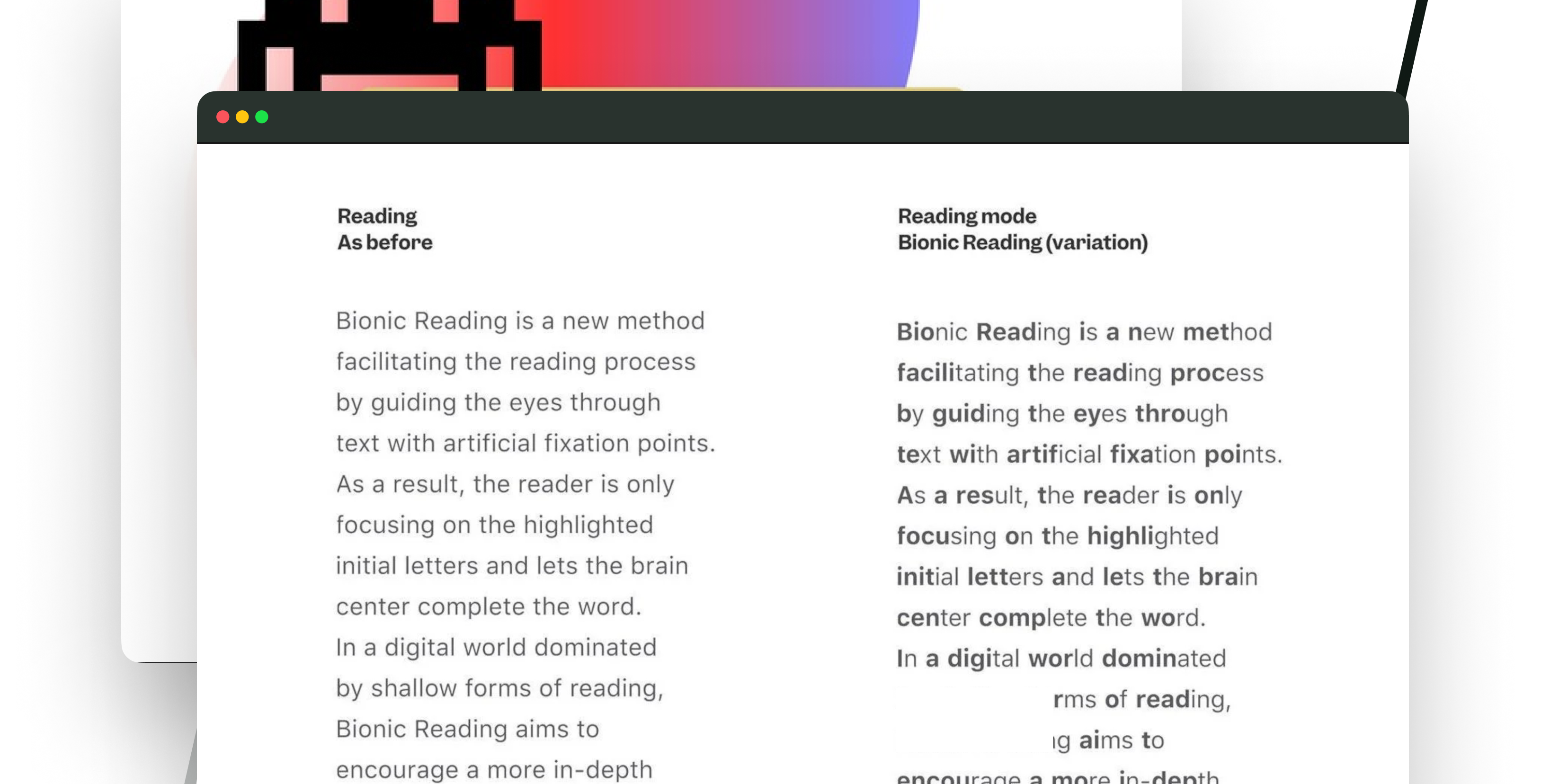 Многие, когда начинают читать книгу или статью, постоянно отвлекаются на свои мысли — сервис Bionic Reading поможет бороться с этим. Он автоматически меняет текст так, чтобы были выделены первые буквы слов. Хватает взглянуть лишь на первые буквы, чтобы понять и распознать слово: даже самый нудный текст можно будет легко прочитать.