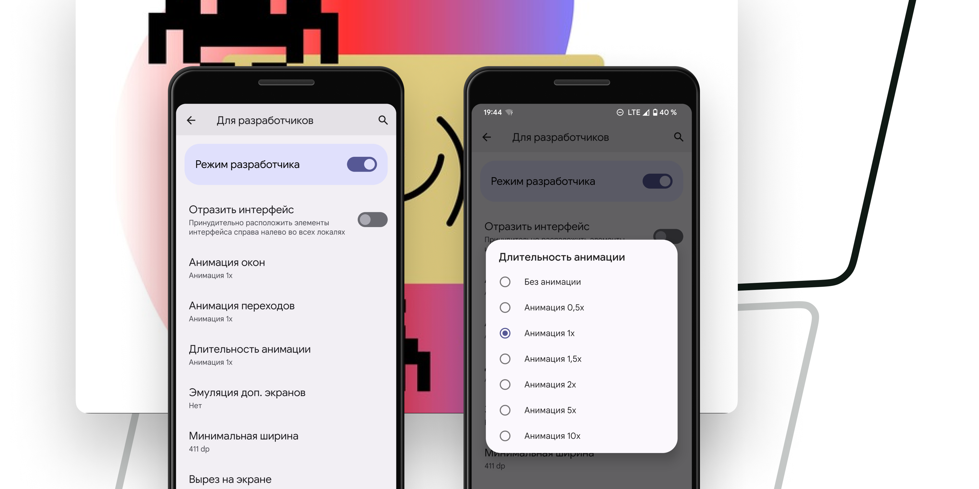 1️⃣ Отключаем анимации. Для этого многократно нажимаем по номеру сборки в «Сведениях о ПО», заходим в «Параметры разработчика», листаем до строки с анимациями и у всех трёх параметров выбираем «без анимации».