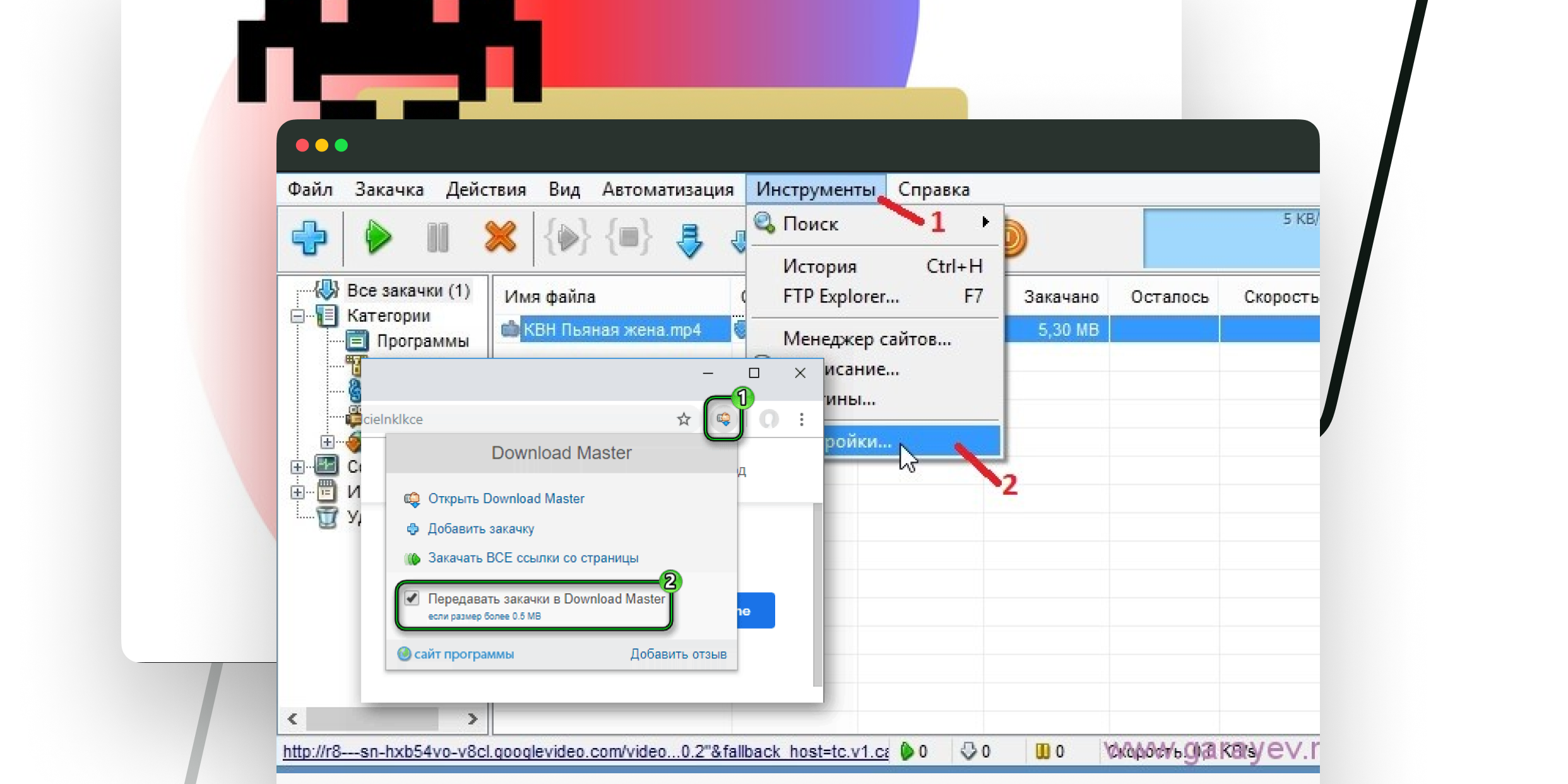 Не на всех сайтах можно легко и быстро скачать видеоконтент — часто не везде даже предусмотрена такая возможность. Если вам нужно загрузить ролик на устройство с какого-то сайта, есть удобная программа Download Master.