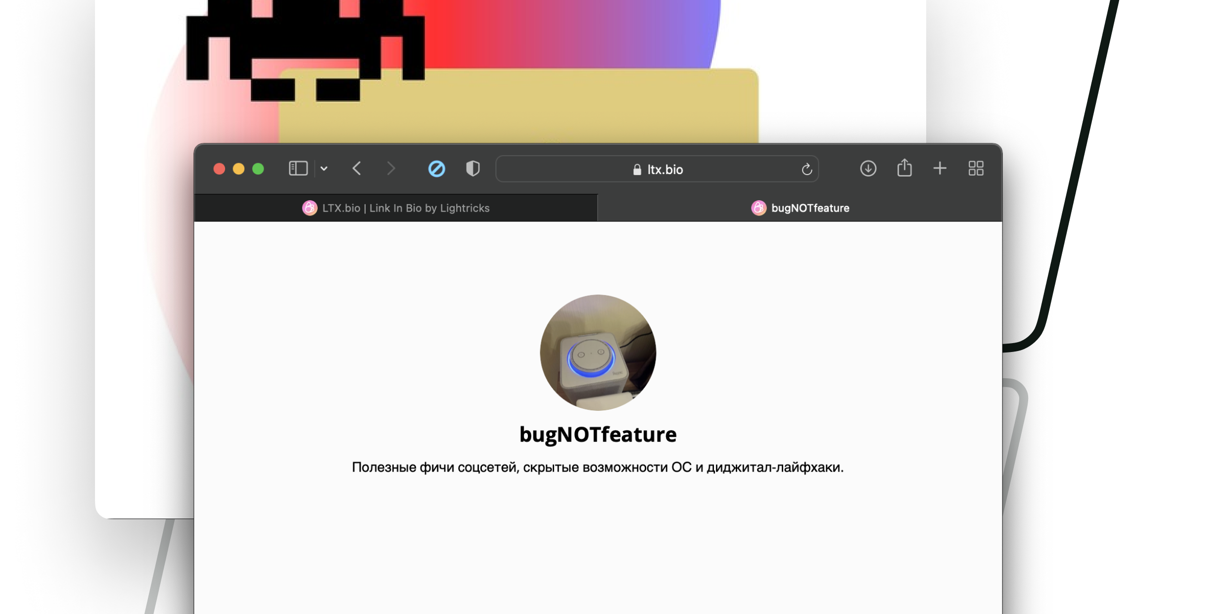 Если вы хотите собрать ссылки на все свои соцсети и информацию о себе на одной странице, чтобы было ей удобно делиться — воспользуйтесь конструктором онлайн-визиток LTX Bio.