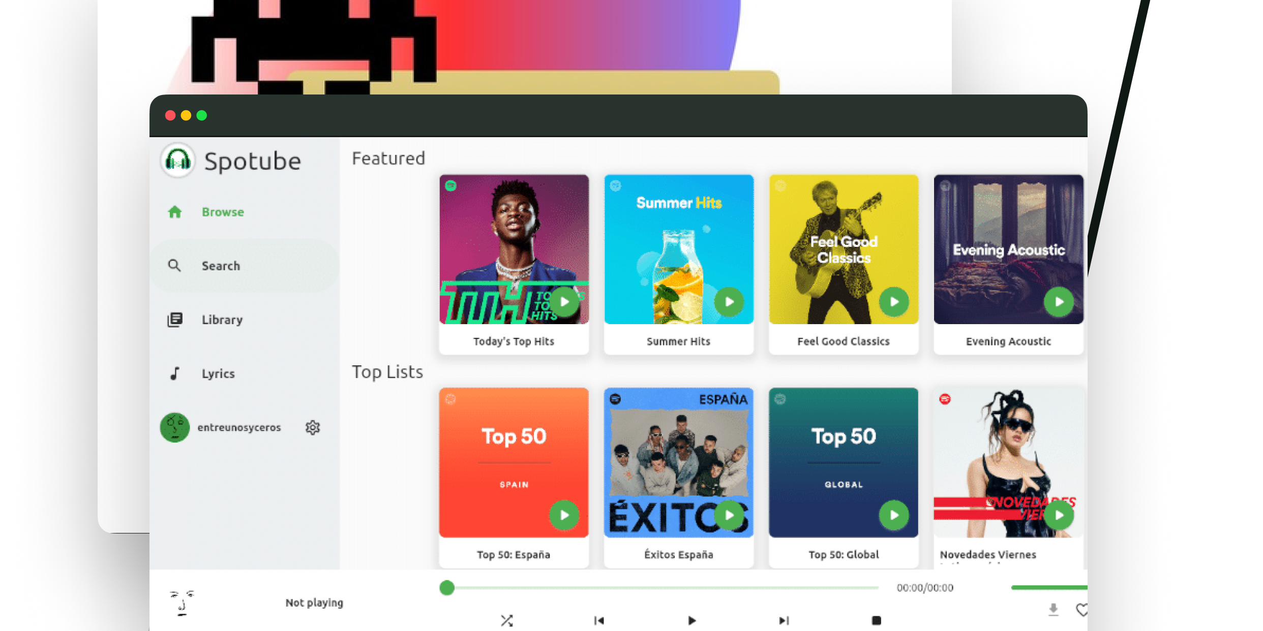 В этом году Spotify ушёл из России — энтузиасты создали на основе его API альтернативный клиент сервиса Spotube. Это клон популярного сервиса с рекомендациями и плейлистами, но он транслирует музыку в приложение через YouTube.