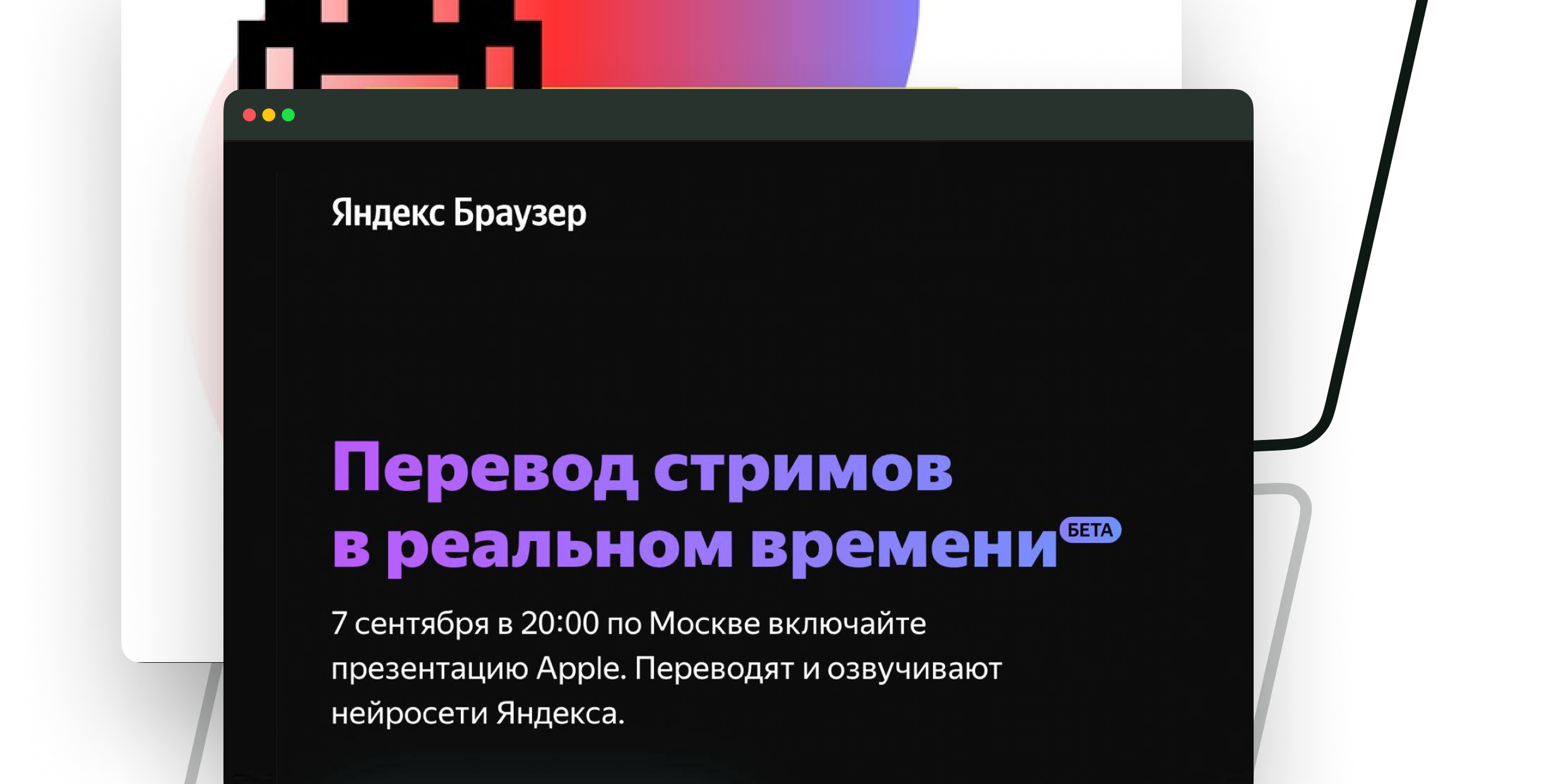 Кстати, вчерашнюю презентацию Apple смотрели с лайв озвучкой от нейросетей Яндекса. Она в прямом эфире переводит трансляцию, подставляя озвучку в зависимости от спикера. Работает прямо из Яндекс браузера. Качество нам понравилось, оцените сами!