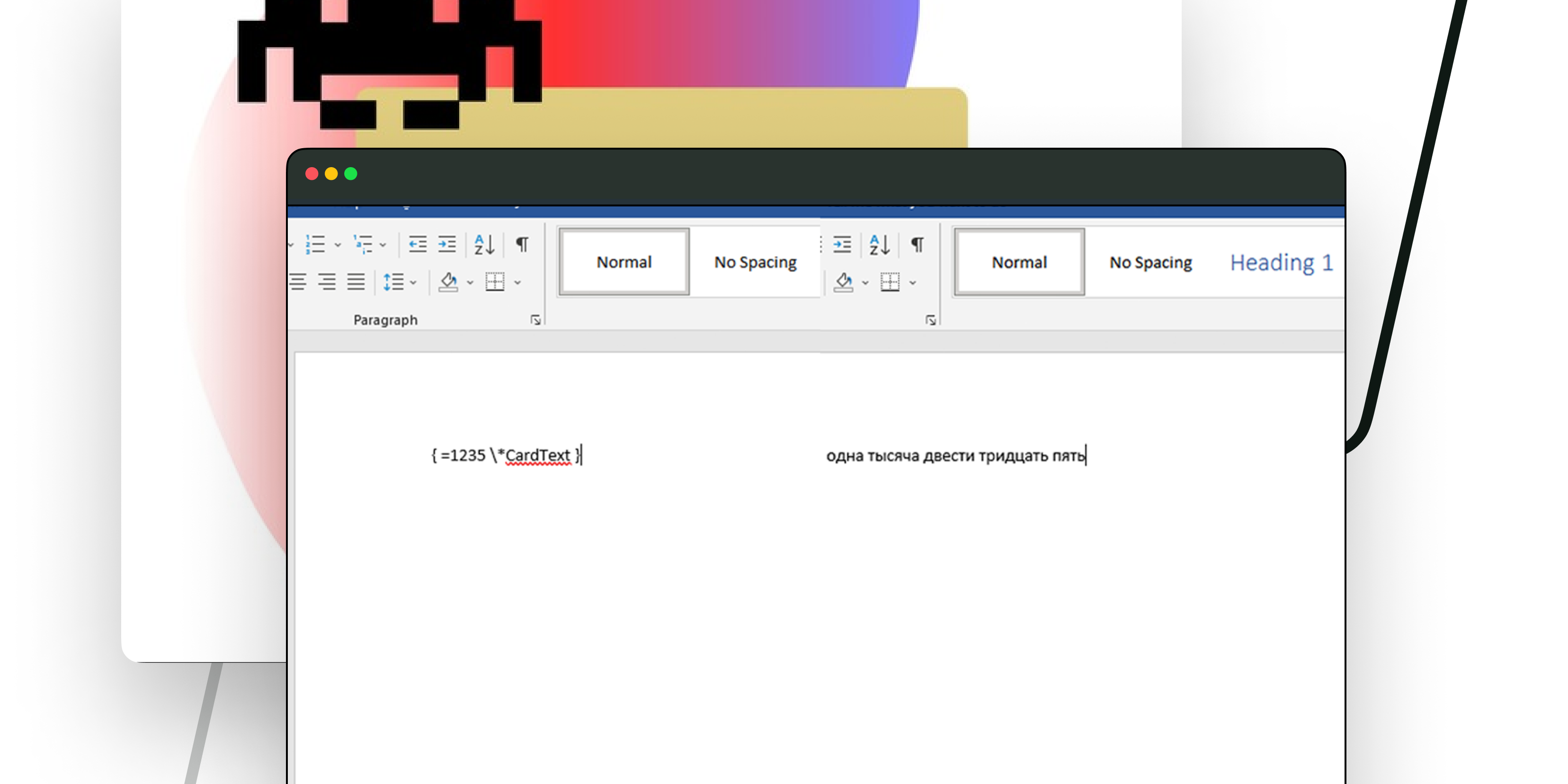 { =1235 \*CardText }», где 1235 — любое число, которое нужно расшифровать словами. 4. Жмем на клавишу «