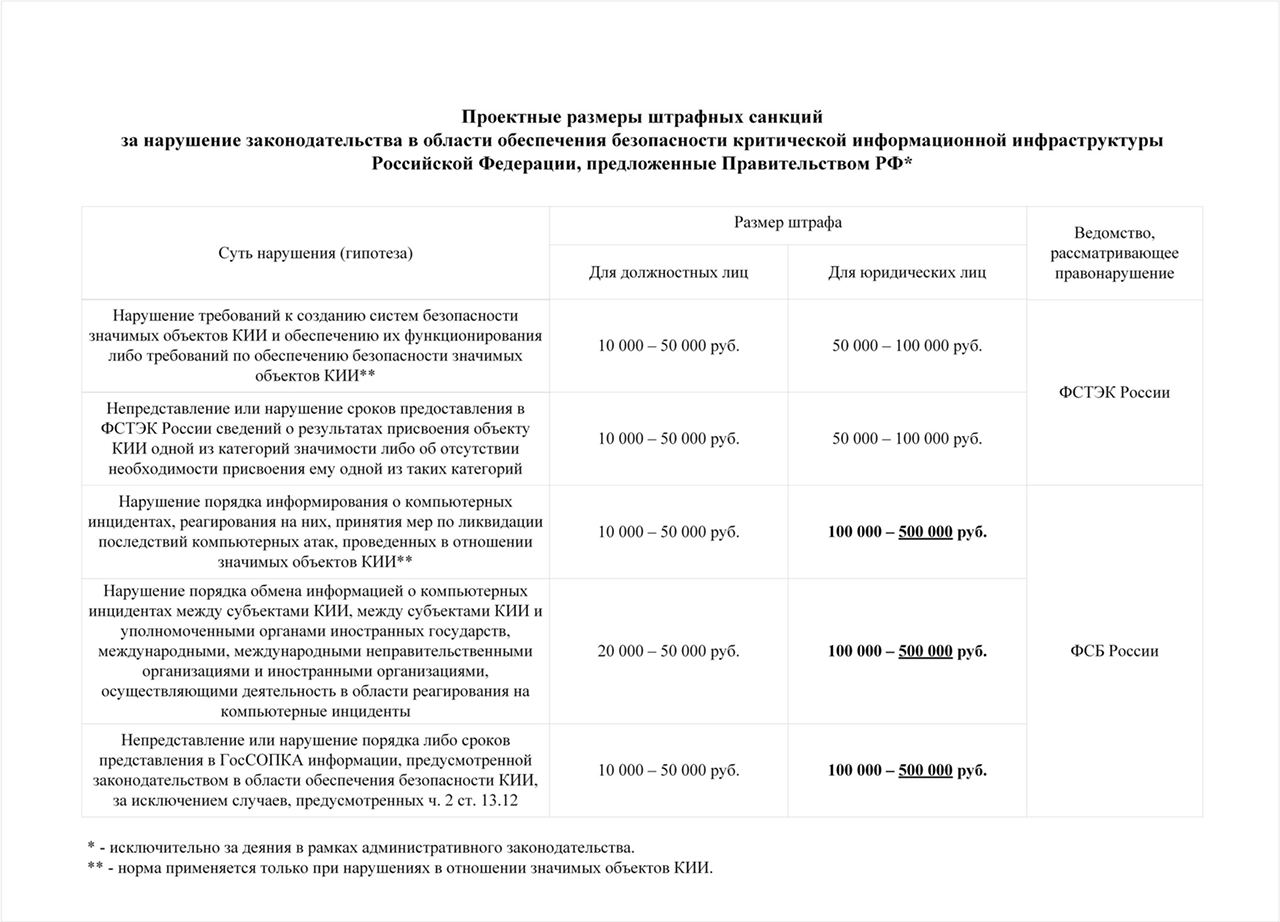 Напомню, что это не первая попытка узаконить административную ответственность за нарушение требований в области обеспечения безопасности КИИ:
