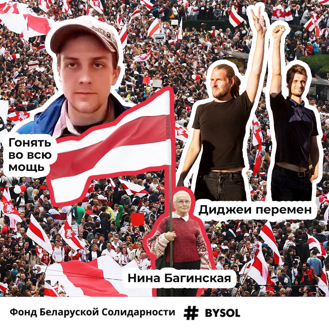 За это время, мы увидели множество замечательных людей, которые по-настоящему стали символами свободной Беларуси. Среди них диджеи перемен — Кирилл Галанов и Владислав Соколовский, мурал в честь, которых возвели на Площади Перемен и восстанавливали заново всякий раз, когда его пытались уничтожить силовики. Нина Багинская, которая своим примером показывала и продолжает показывать, что бороться за свободу свойственно всем людям независимо от того, представителями какого поколения они являются. Сергей Миронов, который на допросе назвал забастовку «хлопотным дельцем» и пообещал, что в изоляторе бросит курить, чтобы начать бегать «не так трусцой, а во всю мощь» — стал национальным мемом революции. И многие-многие другие, имена и истории которых уже стали легендами.
