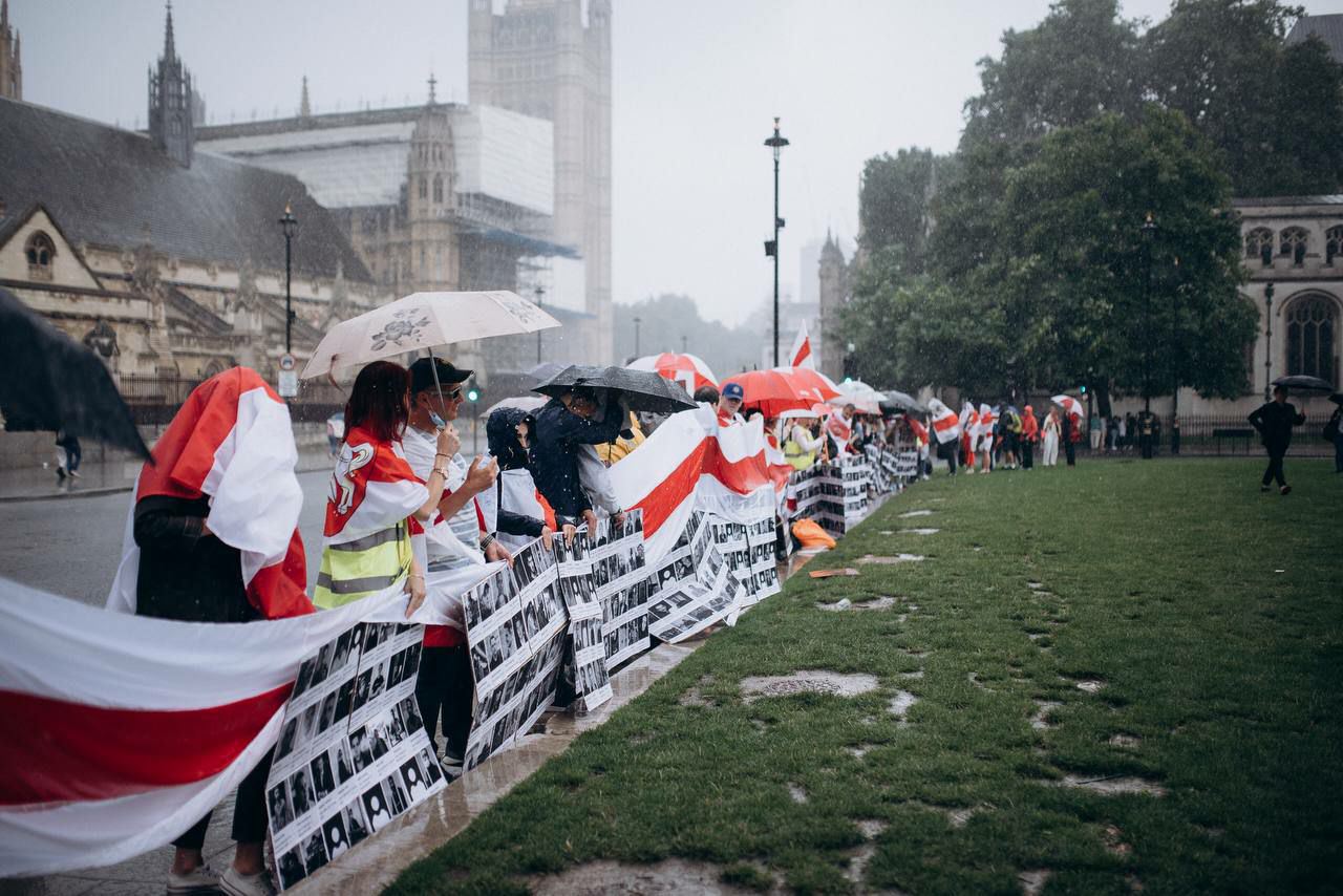 В Лондоне напротив офиса премьер-министра Бориса Джонсона активисты из Беларуси, Гонконга, Мьянмы, Венесуэлы, Кубы требовали от правительства Великобритании последовательной политики по отношению к диктаторским режимам. Также активисты напомнили, как много в Беларуси политзаключенных.