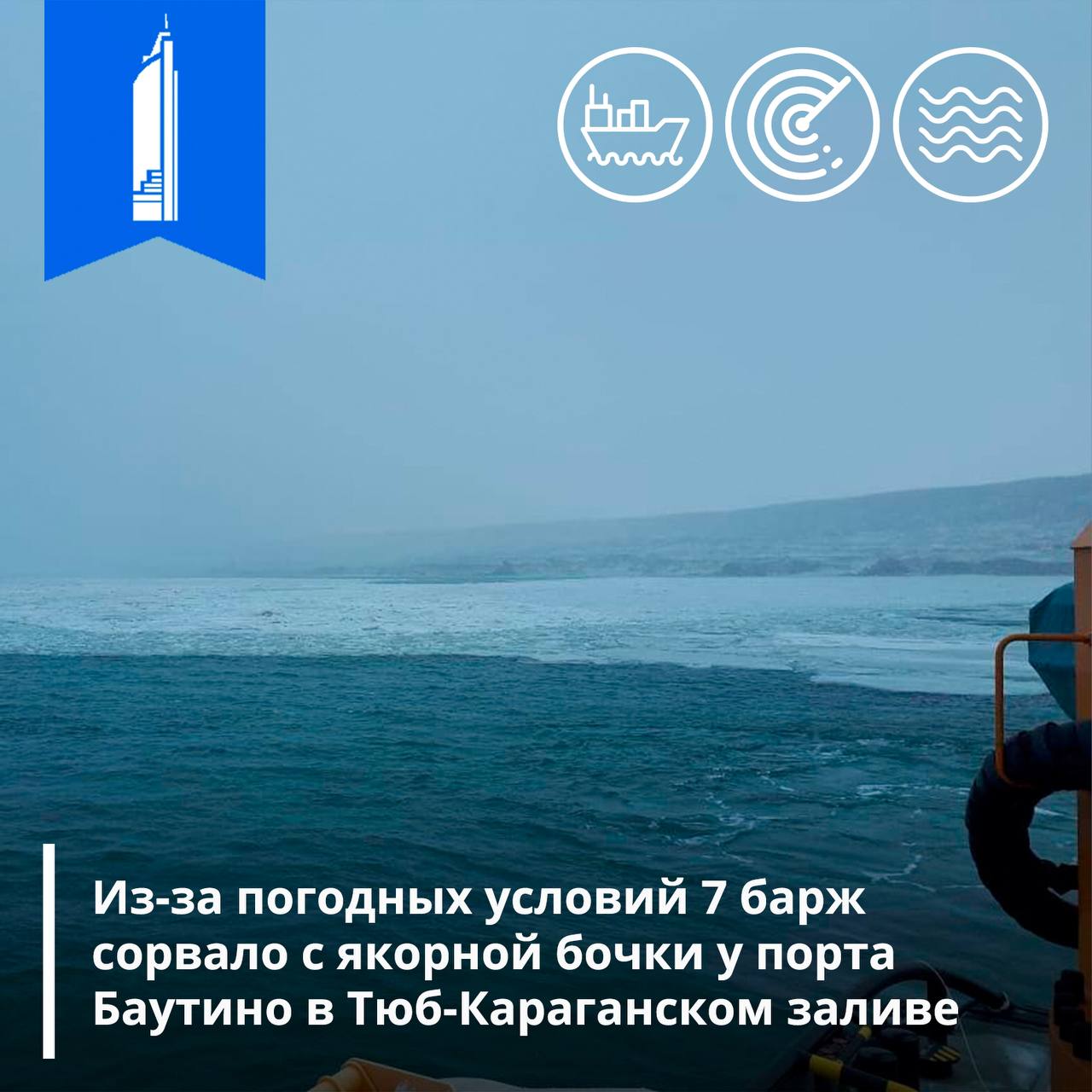 Сейчас баржи дрейфуют в сторону острова Кулалы, севернее порта Баутино. Для их возвращения уже направлен буксир.