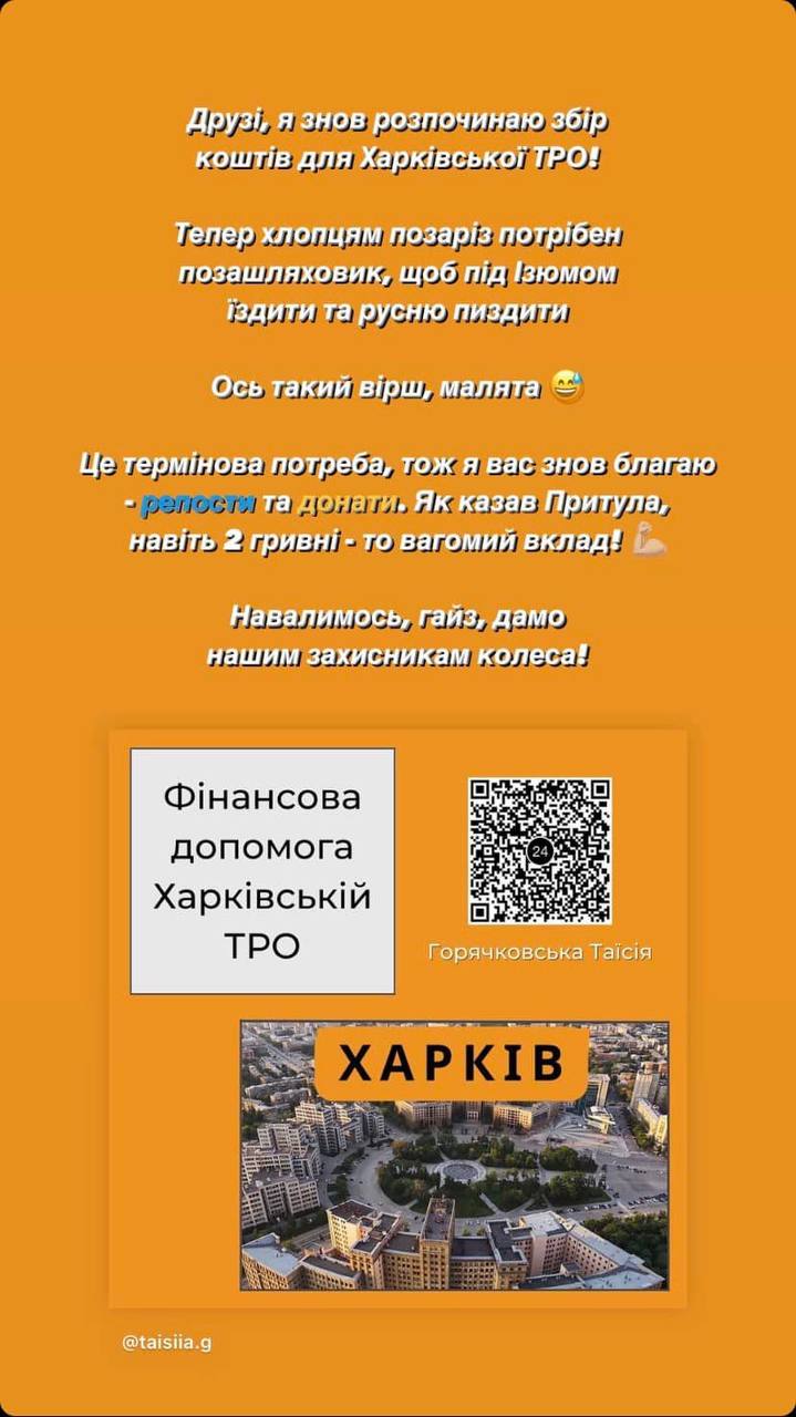 We continue gathering funds for Kharkiv territorial defence. Here’s the original post: