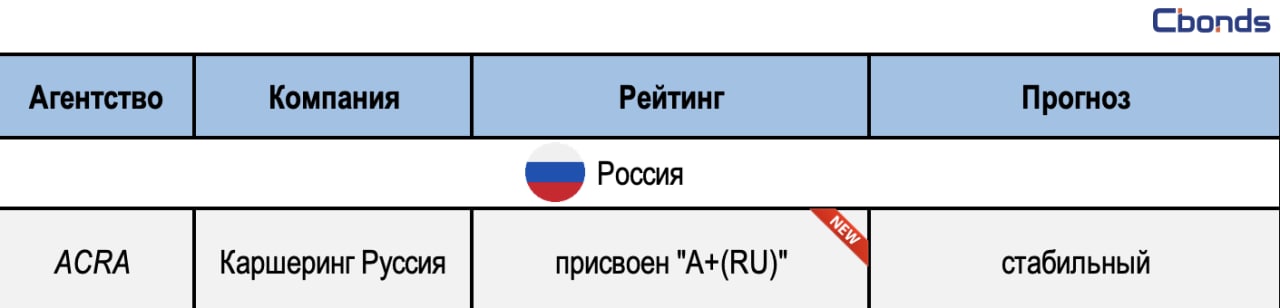🚘 Каршеринг Руссия (Делимобиль): «Кредитный рейтинг обусловлен высокой оценкой бизнес-профиля, которая определена как наличием собственных технологических разработок и инфраструктуры, так и владением парком автомобилей, который позволяет выстраивать Компании шеринговую экономику. Агентство отмечает очень высокие темпы роста выручки Компании и создание собственных обслуживающих мощностей, что, вероятно, позволит ей увеличить рентабельность». (Пресс-релиз ACRA)