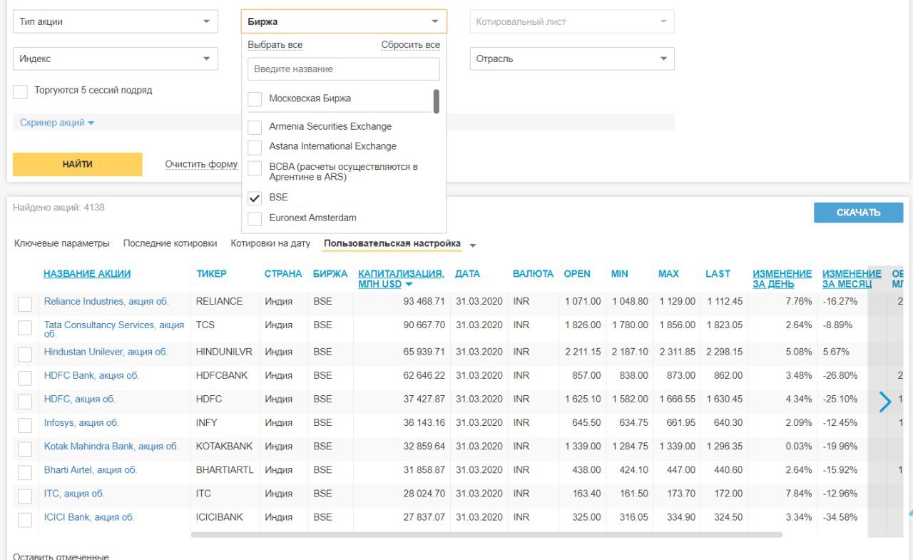 📍Найти акции и их котировки на BSE можно через поиск на наших сайтах Cbonds и Investfunds.