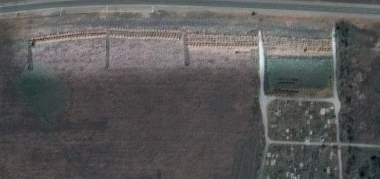 Супутник зафіксував братську могилу в окупованому російськими військами селищі Мангуш, яке знаходиться менше ніж у 20 кілометрах від Маріуполя. Це траншея довжиною у більше ніж 300 метрів.