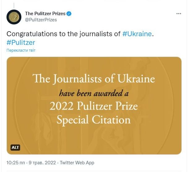 ✍️ Українські журналісти стали лауреатами Пулітцерівської премії