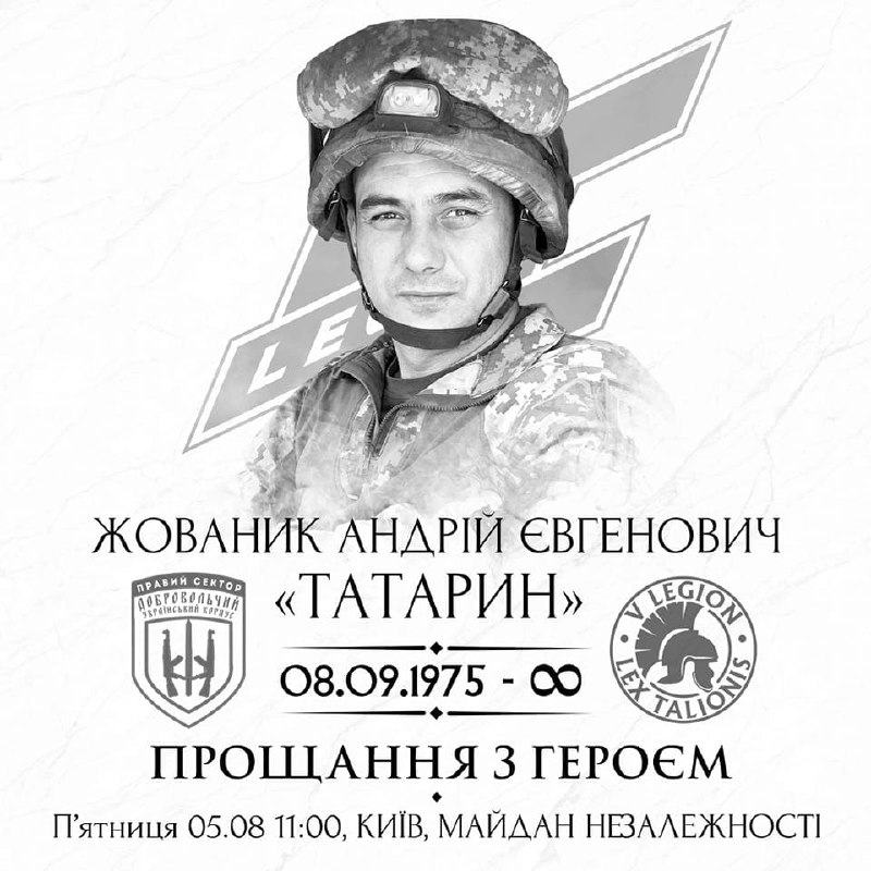 Прощання із загиблим українським воїном відбудеться 5 серпня об 11:00 на Майдані Незалежності.