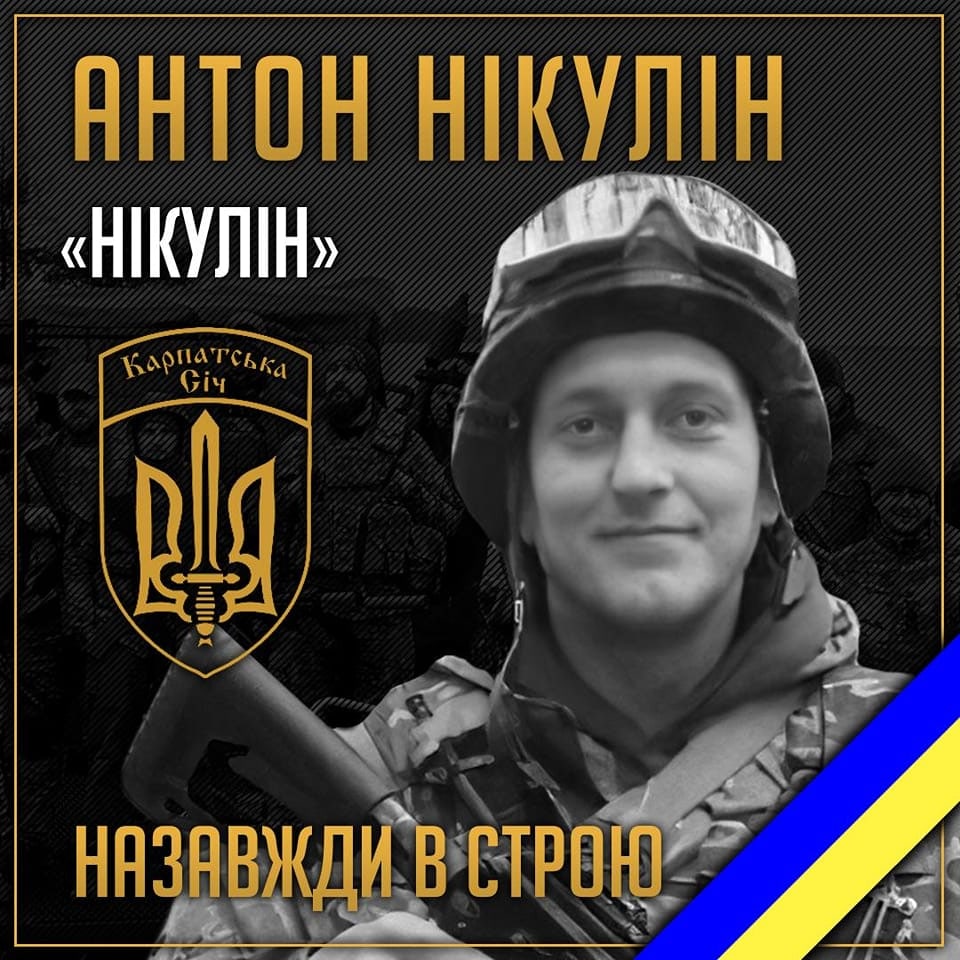 1 серпня під час виконання бойового завдання загинув український воїн Антон Нікулін. Про це написав у Фейсбуці Руслан Андрійко: "В Карпатській Січі з березня 2022. До війни працював в Польщі. Після битви за Київ Антон, не роздумуючи, пішов в лави ЗСУ, аби продовжити боротьбу на східному напрямку. Побратими відкликаються про нього, як про Воїна, чесну, відверту людину. У Нікуліна були золоті руки та щире серце. Друзі знали, що він завжди готовий прийти на допомогу".