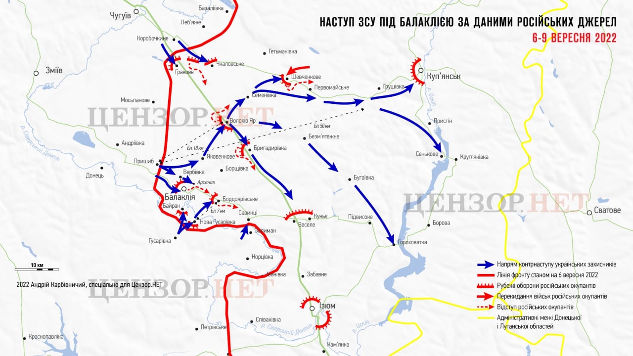 Російські війська поки що не здатні зупинити прорив, ситуація змінюється швидко. Оскільки в Інтернеті викладено вже багато відео та повідомлень з російських та українських джерел, багато оприлюднив карт противник, ми на основі відкритих даних за день все це узагальнили.