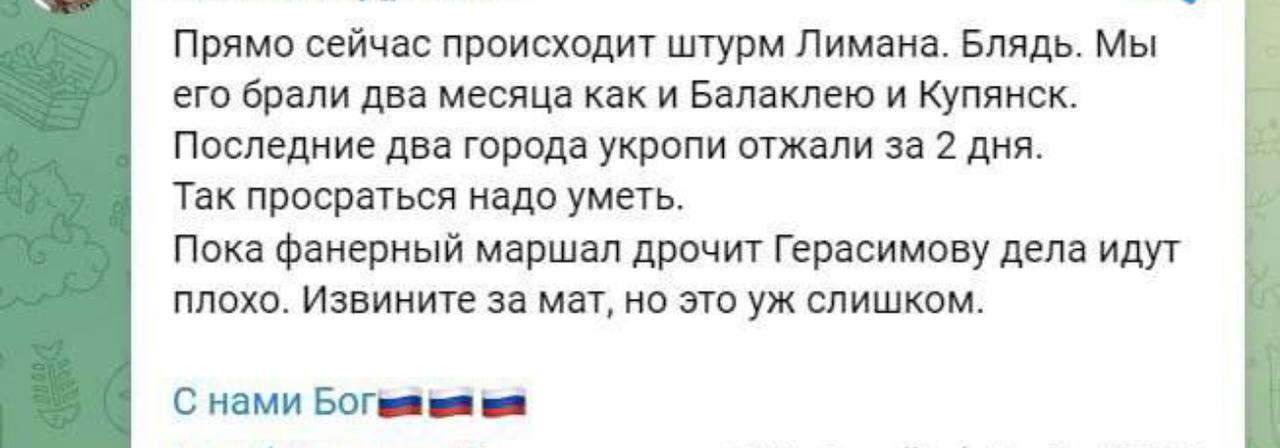 🙃 Російське Міноборони поставило завдання усім своїм пропагандистам показувати, що в угруповання ЗС РФ в Ізюмі, яке потрапило в оперативне оточення, нібито йдуть резерви