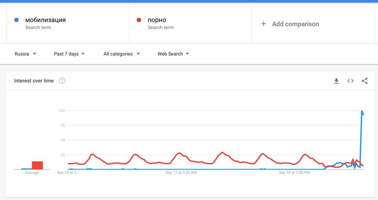 Росіяни зараз активно гуглять слово "мобілізація", а от слово "порно" - менше, ніж завжди.