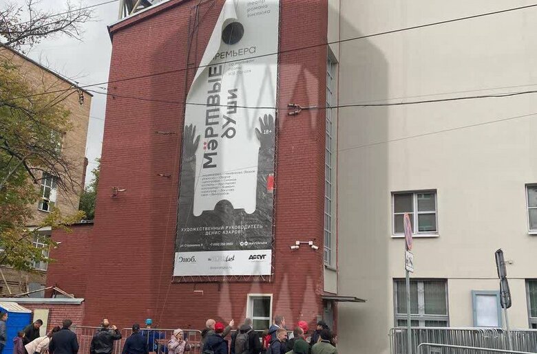 🤡 У московському театрі Віктюка відкрили призовний пункт: на фасаді був банер вистави "Мертвые души"