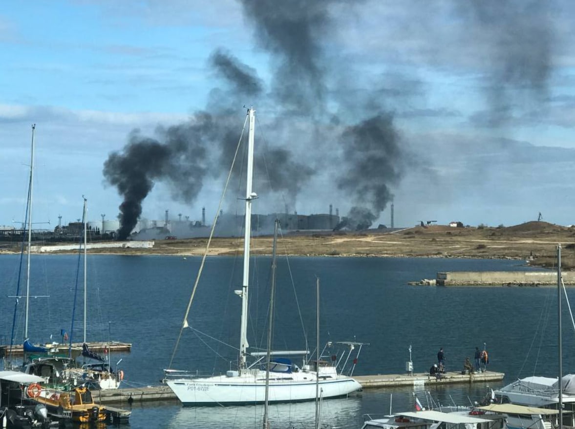 Атака украінських надводних ударних дронів-камікадзе російських бойових кораблів у головній базі Чорноморського флоту у Севастополі. На відео видно момент ураження російського бойового корабля, за повідомленням украінських джерел, досягнуто влучання в новий флагман ЧФ «Адмірал Макаров». Спільна операція ЗСУ та СБУ.
