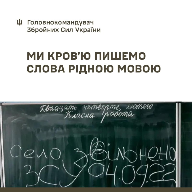 "Ціною життів кращих ми виборюємо право говорити рідною мовою, бути українцями, визначати своє майбутнє. Українська мова - це мова наших батьків і дітей. Мова нашої Перемоги", - зазначив головнокомандувач ЗСУ Валерій Залужний у День української писемності та мови.