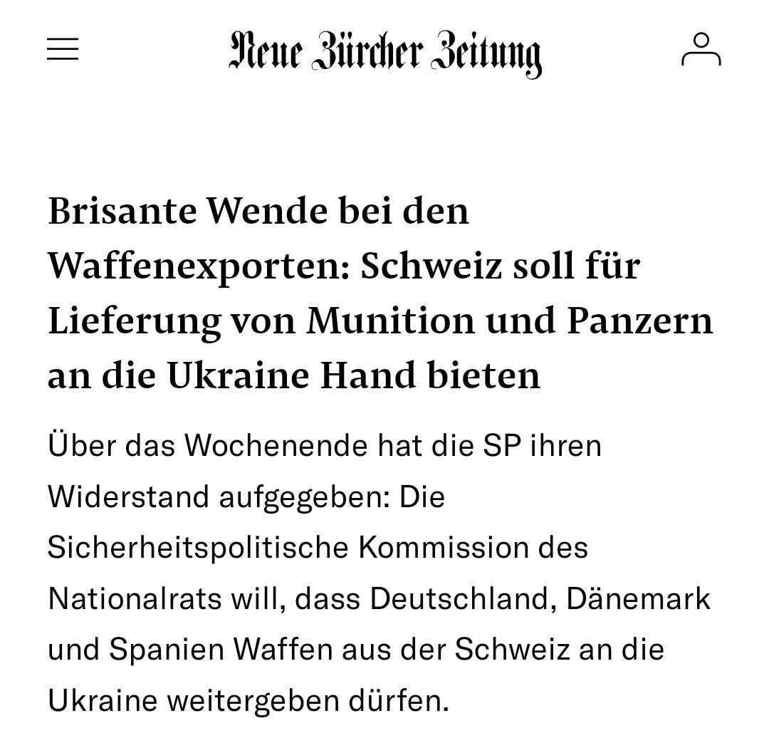 🇨🇭Швейцарія скасує заборону на постачання озброєнь Україні, - ЗМІ