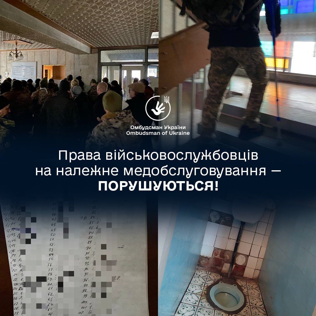 "Військовослужбовці з різним ступенем травм змушені годинами очікувати в черзі на прийом до лікаря. Під час особистого спілкування з військовослужбовцями останні повідомили, що черги до окремих спеціалістів становлять понад 500 осіб.