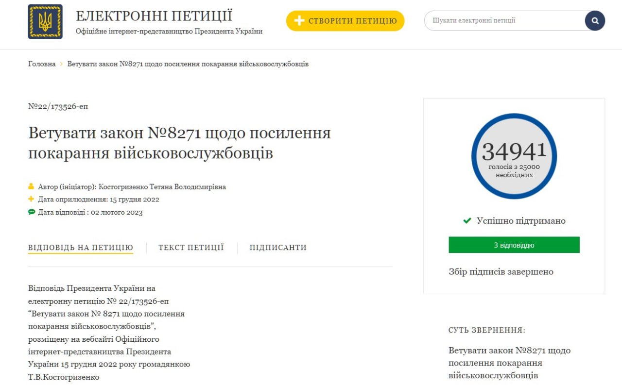 ‼️ Зеленський відповів на петицію з проханням ветувати вже підписаний закон про посилення відповідальності військовослужбовців