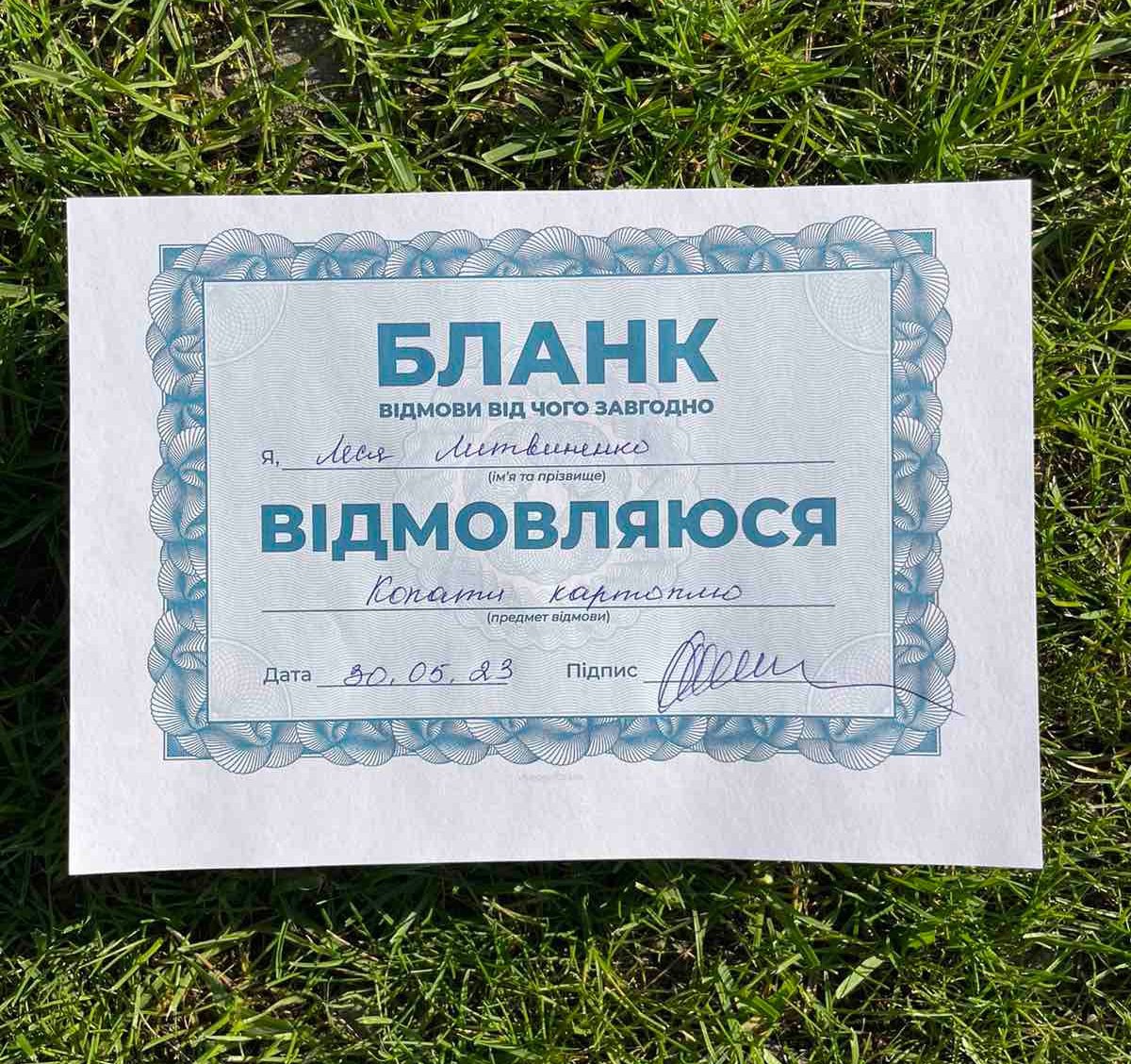 "Якщо ви раптом прокинулися вранці і вирішили відмовитися від середньої освіти/йти на роботу/мити посуд/їсти манну кашу — скористайтеся бланком відмови від чого завгодно", - іронізує засновниця проєкту "Всеосвіта" Леся Литвиненко.
