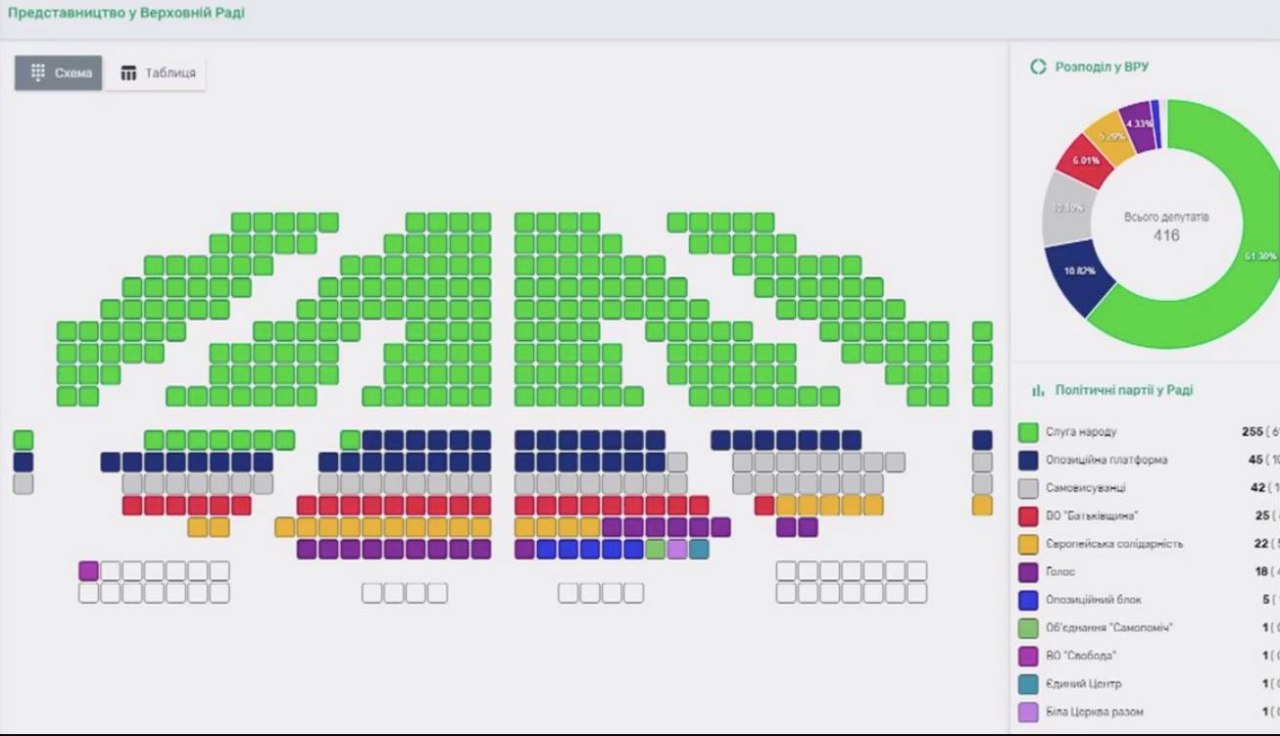 "Слуга народу" опублікувала інфографіку можливого розподілу місць у Раді